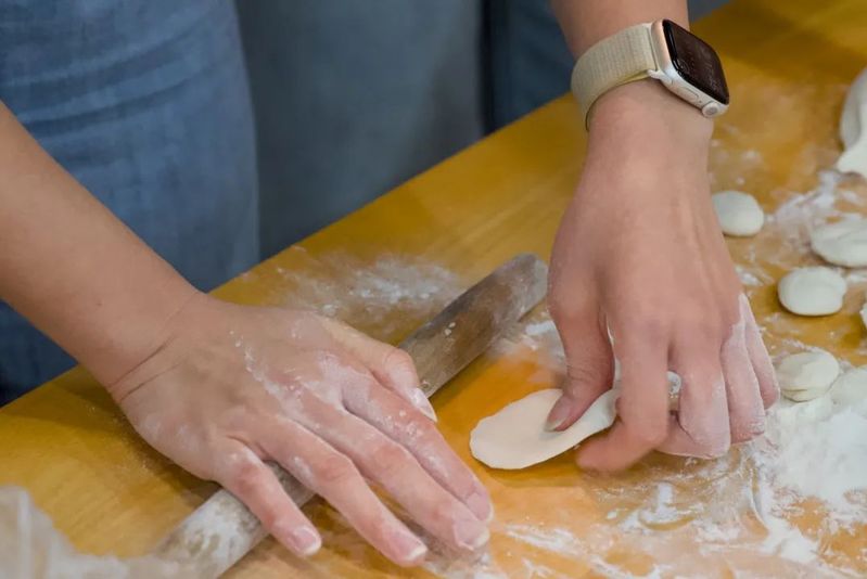 本次活动设分组竞速赛环节。分组竞速赛以桌为单位,八组队伍每组推选出两位选手,一位负责擀面团,一位负责包饺子,进行时长四分钟的包饺子比赛。