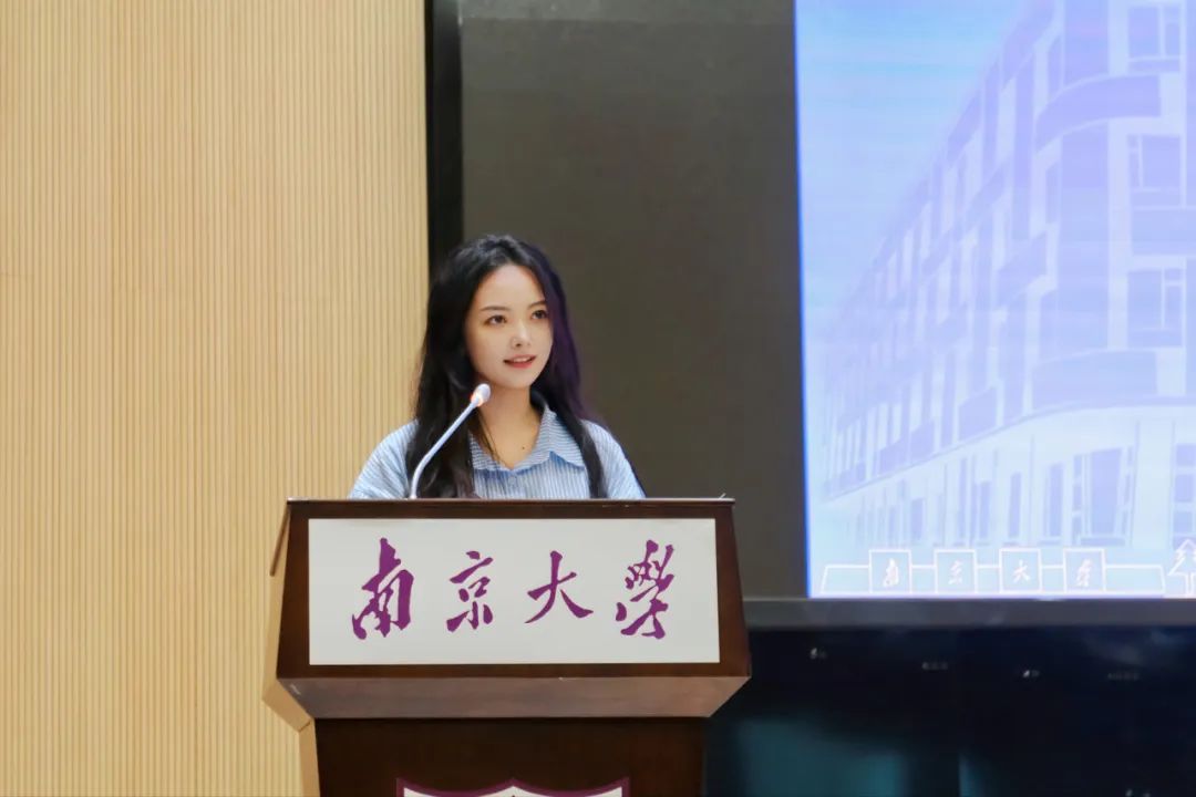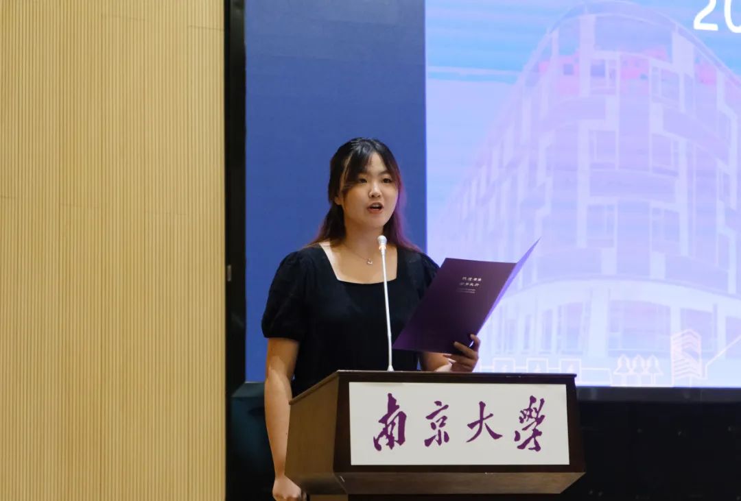 2022级硕士研究生陆嘉蕙同学代表老生分享了在南大新传学习的心得体会。她鼓励新生同学们认识自我、明确发展方向,潜心钻研,珍惜求学时光,志存高远、体悟时代发展。