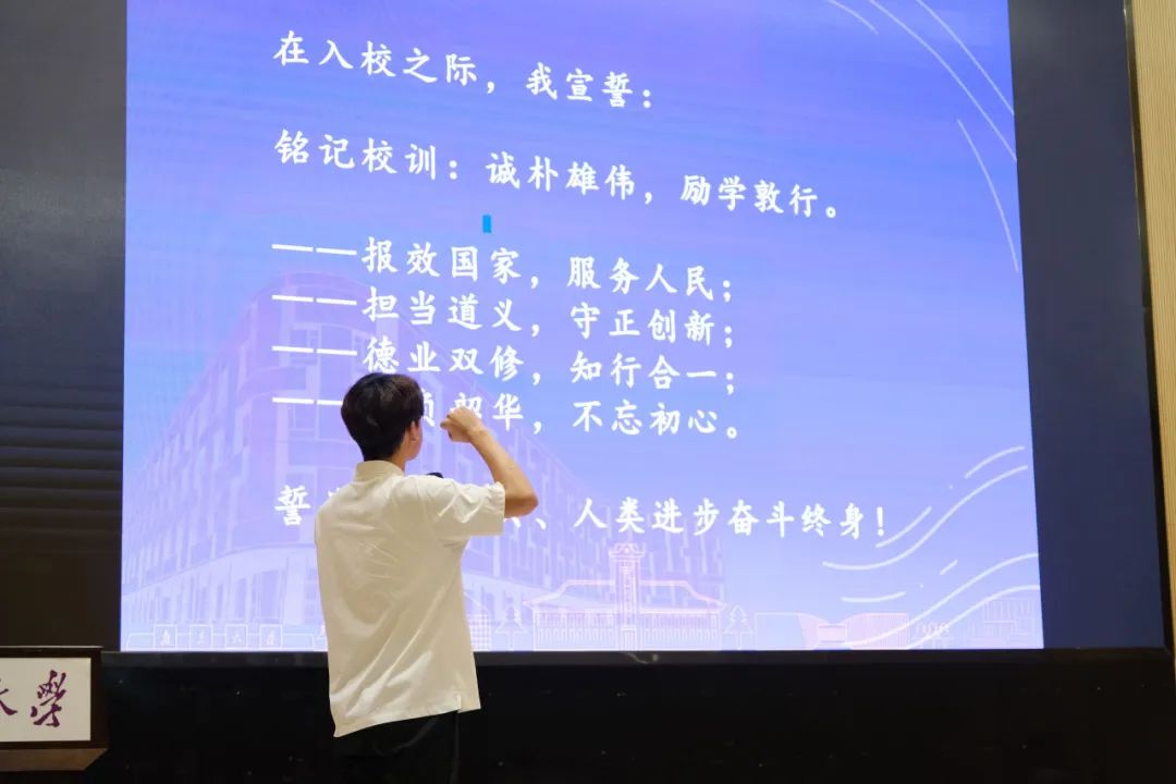 随后,在2022级本科生郁程浩同学的带领下,全体新生进行了庄严的入学宣誓。