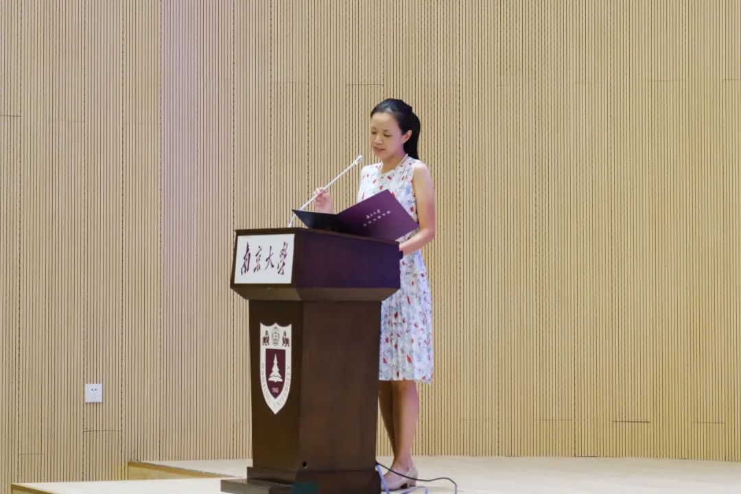 2023级硕士研究生艾琬柠同学代表研究生新生发言。她首先回顾了自己本科在南大新传就读的难忘时光,表示南大新传不仅向同学提供了与世界“过招”的技能,更启发了同学们建立认知世界的思维框架,使大家形成了具有理想主义光辉的世界观与人生观。随后,艾琬柠同学对自己寄予了新的期待,希望自己及同学们能够找到毕生热爱,深耕学术之路,做有理想、有本领、有担当的新闻传播人才。