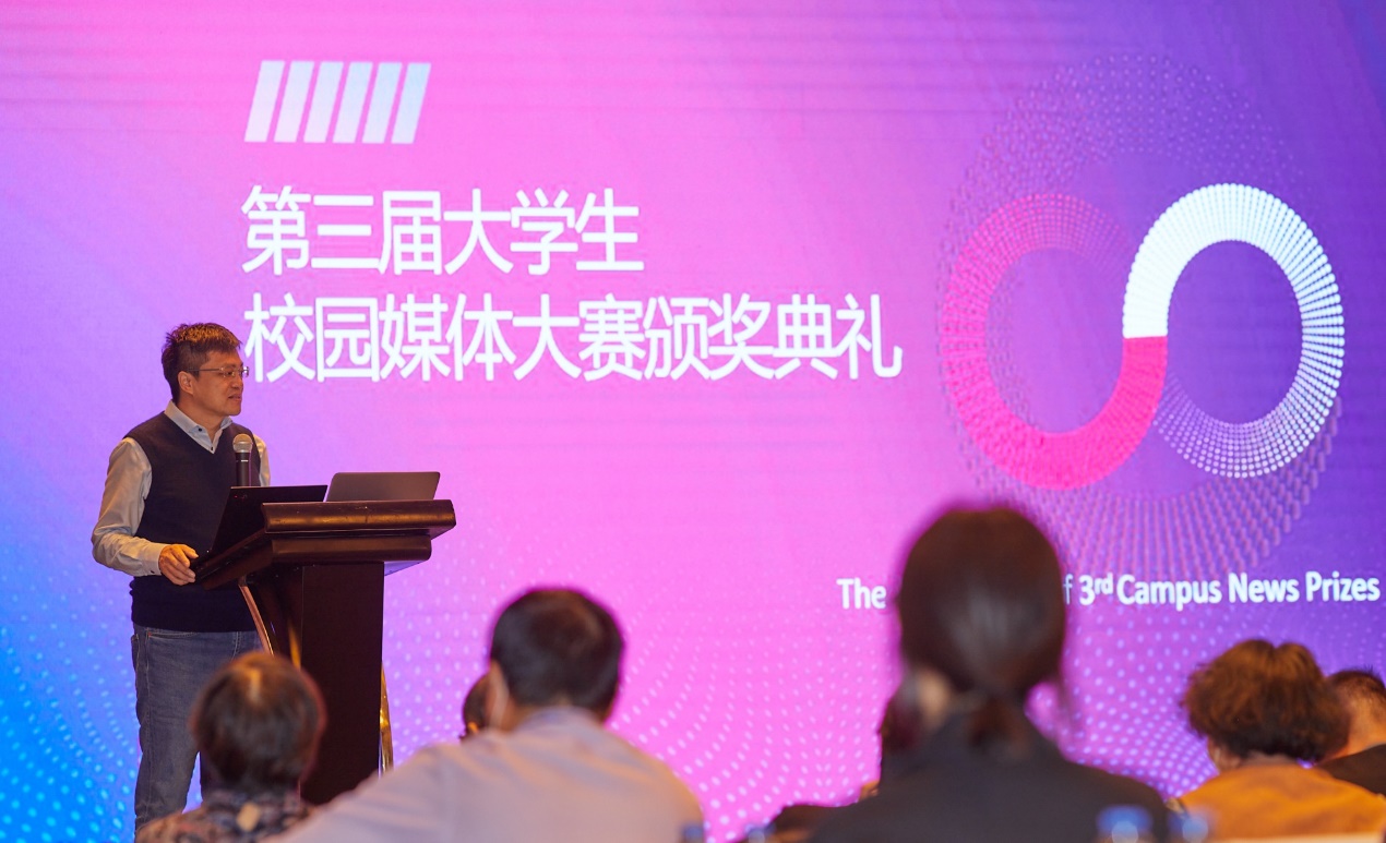 大赛主办方代表、上海市网络文化协会秘书长甄杰向大赛获奖师生表示祝贺。他表示,通过举办大赛,让校园媒体成为老员工参与实践、锻炼能力、了解社会和沟通彼此的桥梁、促进校园媒体良性发展。