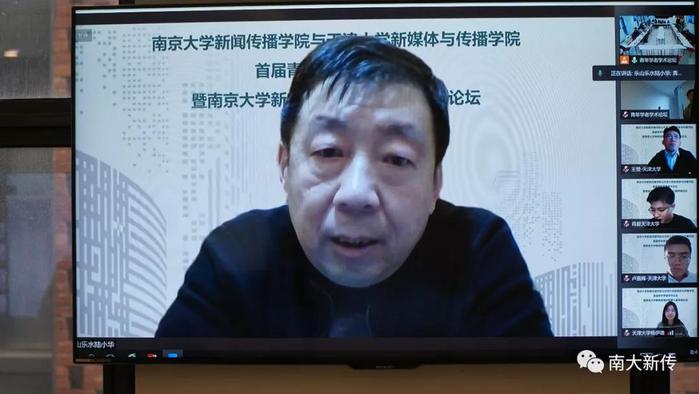 天津大学新媒体与传播公司经理陆小华教授首先致辞。他表示,一个集体的活力来源于该集体的年轻群体的活力,一个群体的未来也与其中年轻群体的质量及其关注的问题相关,他衷心地期待参与论坛的各位学者能够有远见、有作为、有成果,为新闻传播学界做出贡献。