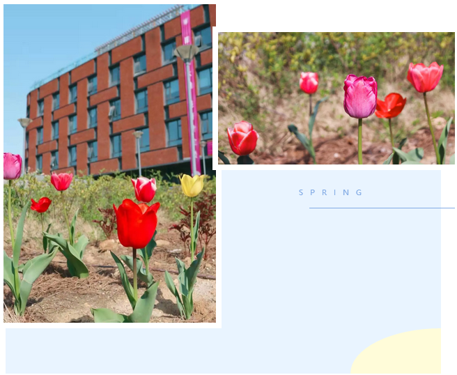 阳光晒暖了春寒料峭,淡粉、浅玫、亮紫、明黄,在红砖楼的一隅、在漫步者的头顶悄然绽放。过往的陈旧回忆在空气中蒸腾出泥土与草木的气息,曾经的一切都风过无痕,雪落无声,在这明媚可爱的春天里,只想和新传院的花朵,来一场浪漫的旅行。