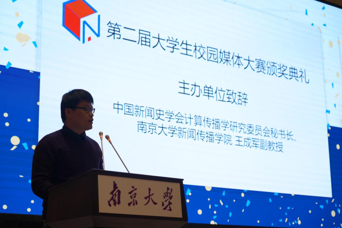 中国新闻史学会计算传播学研究委员会王成军副教授为大家介绍了大赛的筹备和评选情况,特别指出:校园媒体应持续发声、推陈出新。他分析了优秀作品的报道类型,发现优秀作品仍以文字图片类为主,而在音频、视频等创新类优秀作品上还有发挥空间。他希望通过大赛促进校园媒体的良性发展,让校园媒体成为员工进行新闻实践、提升个人能力和水平的舞台。