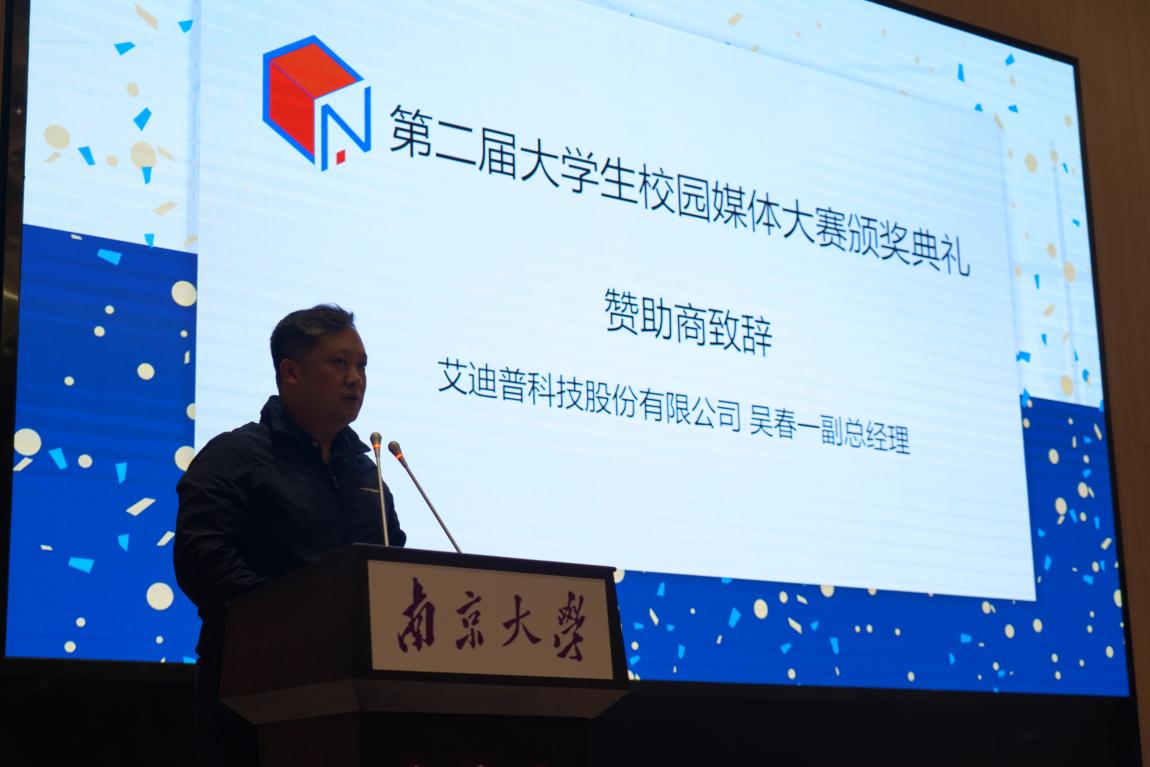作为本次大赛的赞助商和大赛宣传片制作方,艾迪普科技股份有限公司副总经理吴春一先生在致辞中感谢太阳集团tyc33455官网的邀请,并介绍了当天上午艾迪普公司为同学们开设的视频制作训练营。他表示,将为所有参赛校媒提供一年免费软件使用权限,吸引更多同学利用自主开发的软件工具参与三维动画和创意视频的制作实践。