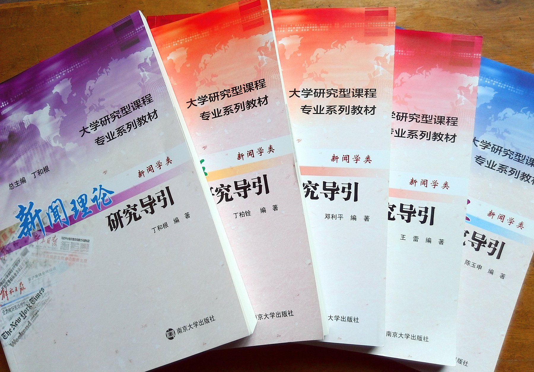 近日,由公司多位教授携手合作完成的《大学研究型课程专业系列教材·新闻学类》第一批教材由太阳集团tyc33455官网出版社出版。这套教材由丁和根教授总主编,公司新闻与新媒体系丁柏铨、邓利平、陈玉申、丁和根、王蕾等多位老师合作编著,从开始策划到正式出版,前后历时四年多,目前已出版《新闻理论研究导引》、《新闻写作研究导引》、《新闻编辑研究导引》、《新闻评论研究导引》、《中国新闻史研究导引》等六册。