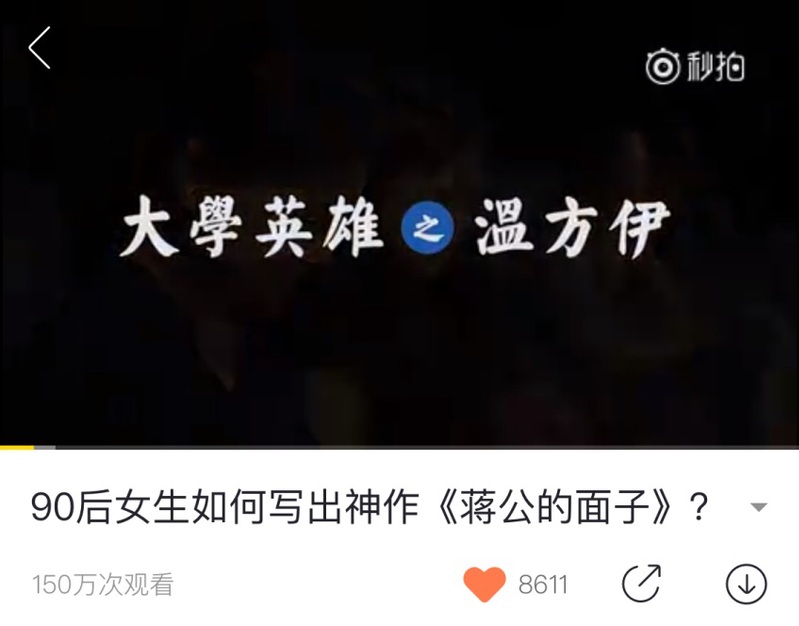 《大学英雄》是公司师生发起的人物短视频产品,专门拍摄国内外高校中有思想、有创造、有故事、有情趣,能引发思考与共鸣的老师或员工。