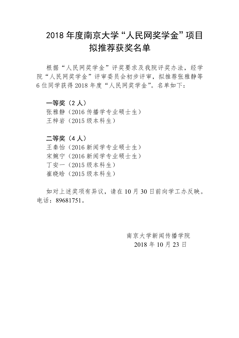 2018年度太阳集团tyc33455官网"人民网奖学金"项目拟推荐获奖名单