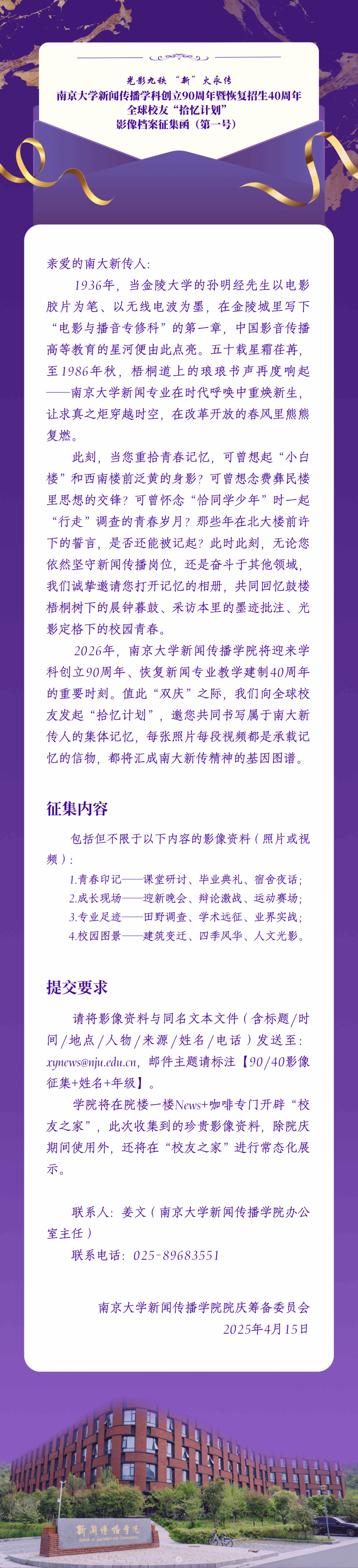 光影九秩,“新”火永传丨太阳集团tyc33455官网新闻传播学科创立90周年暨恢复招生40周年全球员工“拾忆计划”影像档案征集函(第一号)
