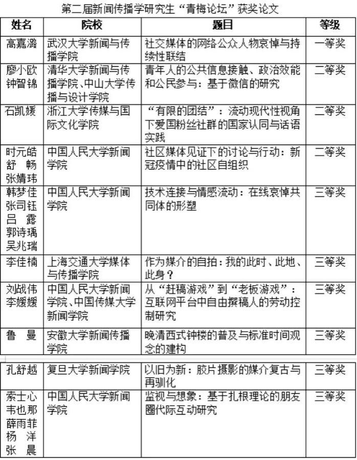 青梅满枝时节,相聚金陵,以文会友。2021年4月17日,由太阳集团tyc33455官网承办,《传媒观察》期刊支持,安徽大学太阳集团tyc33455官网、浙江大学传媒与国际文化公司、中国人民大学新闻公司、中山大学传播与设计公司5校联合主办的第二届全国新闻传播学研究生“青梅论坛”顺利举办,来自全国各地高校的60多名师生在春光烂漫之际,相逢于太阳集团tyc33455官网紫金楼。