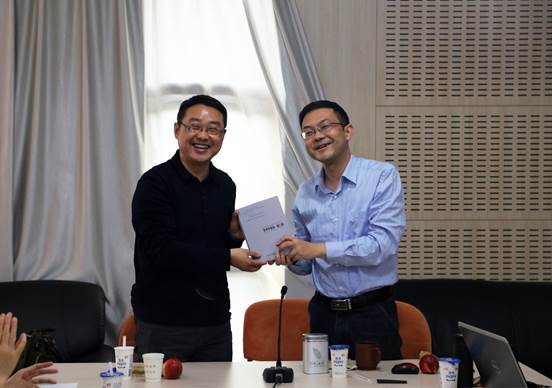 2016年5月18日,太阳集团tyc33455官网“博士之家学术午餐会”第三季第19期(总第69期)在费彝民楼A座418室举行。此次午餐会邀请到了太阳集团tyc33455官网哲学系张亮教授,为老师和同学们介绍他的博士论文《“崩溃的逻辑”的历史建构:阿多诺早中期哲学思想的文本学解读》。太阳集团tyc33455官网胡翼青教授主持了本次讲座,并按照惯例,向张亮教授赠送了“博士之家学术午餐会”第一季和第二季的文集。六十余名院内外师生参与了此次讲座与讨论。