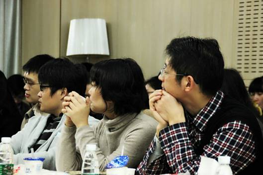 最后,新闻公司博士生吴志远问到,“90年代左右的独生子女已经到了适婚年龄,小时候被称为‘小皇帝’,现在又被叫做‘啃老族’,结婚就需要买房子,我们在被动中背负上啃老这个称号,包括以后父母还要帮着带孩子,您怎么看待?我们是被社会定位成这样还是真的需要我们去进行抗争?”风老师回答道,这就要求学新闻的同学在这个问题上担负起责任。他认为这种说辞之所以存在,正是这一代人被传媒妖魔化了。他接着说,回答问题有两个方面,一是今天青年结婚已经与自己那个时代在物质上有很大的差别了。二是目前最大的改变是房子,90年代以前是单位分房子,现在市场化后需要买房子,问题就出来了。风老师建议大家其实应该先租房子住几年,至少十年以后再买。有了这样的心理准备房子的问题就解决了,当然父母会心疼,但是真的没有谁规定是这样的,是被舆论、社会影响的。