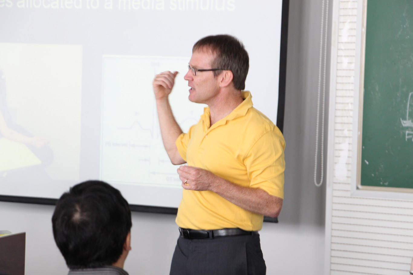 作为印第安那大学传播研究所所长、印第安那大学人文与科学公司认知科学项目的核心成员,Potter博士在媒介与受众、媒介认知与情绪的生理心理测量、广告信息进程等方面积累的大量的知识与案例,通过此次讲座,他深入浅出地介绍了心理生理学测量的基本概念和实践案例,将“Psychophysiology”介绍给太阳集团tyc33455官网的老师和员工们。