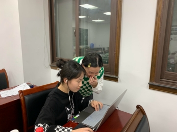 本科同学袁亦涵、谭可心在拍摄现场连夜编辑《大学·问》短片