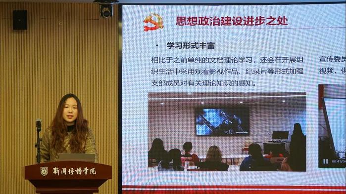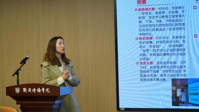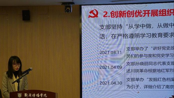 李丹妮除了分享本年度支部的特色活动之外,还汇报了支部党员们的学业、就业情况,外地党员成立临时党小组集中学习,联系支部的党委委员李晓愚认为支部活动的参与感很强,学习活动既以史为鉴,也能够联系当下,期待未来有更多创新。