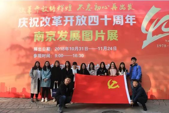 2018年11月23日,2017级学硕党支部与新华日报第十二党支部共同举行了“回顾光辉历程 重温改革记忆——庆祝改革开放四十周年”组织生活会。在本次组织生活会召开的前一天,新传17级学硕党支部的同志们实地参观了在南京市规划建设展览馆展出的“庆祝改革开放四十周年南京发展图片展”。