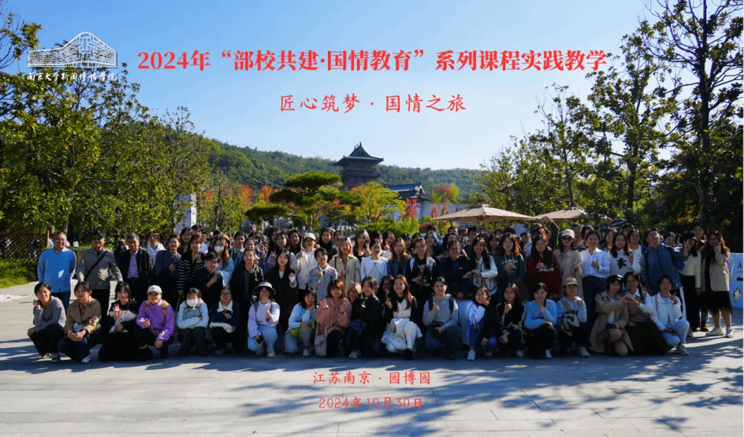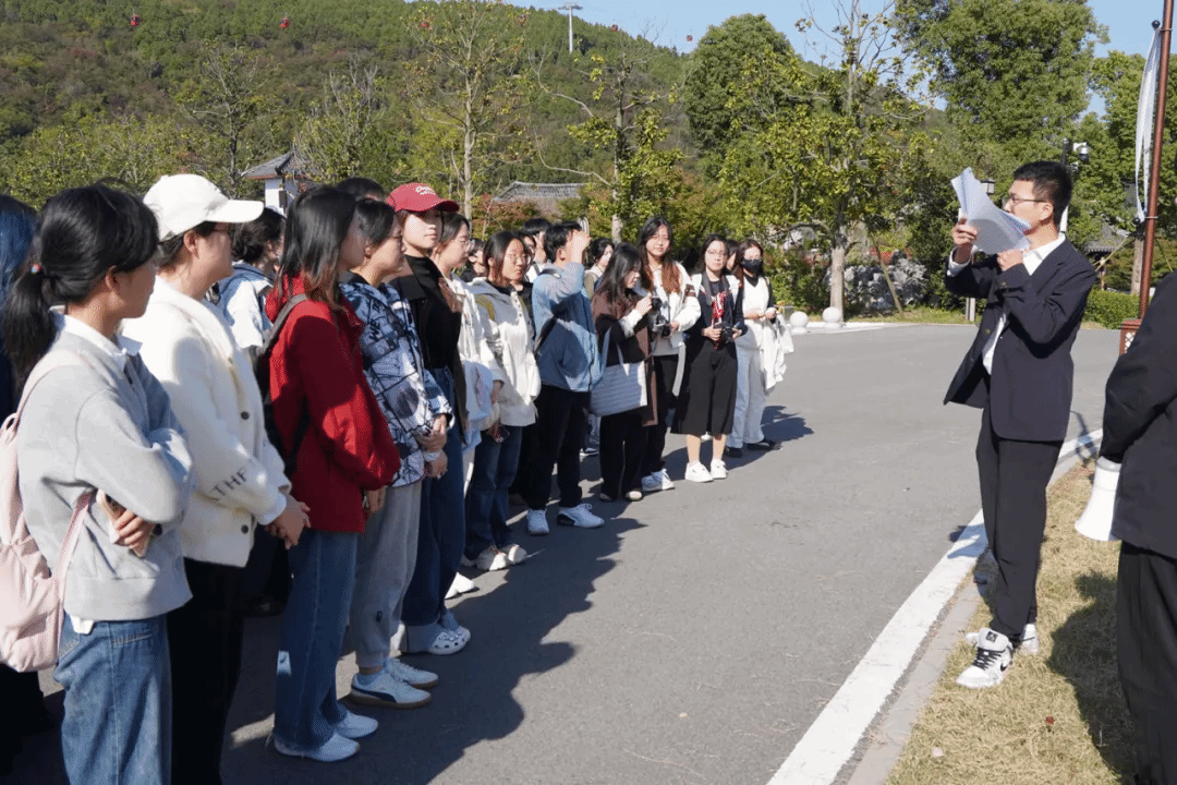 2024年10月30日下午,太阳集团tyc33455官网“部校共建·国情教育”系列课程全体师生前往江苏园博园开展实践教学活动。此次实践课程以线下实地参访的形式开展,在中建八局文旅博览投资发展有限公司同志的带领与讲解下,同学们沉浸式领略江苏园林的工艺之美,体悟蕴藏于一砖一瓦、一草一木间的工匠精神,探索中华优秀传统文化在园林建筑中的生动呈现和创新转化。