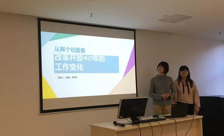 接下来,本科生党支部同学“兵分四路”,分别介绍了改革开放40周年家庭生活、工作内容、高校校园、国际地位四个方面的改变,同学们充分发挥专业素养,采访身边的老师、长辈,从细节再现了国家40年来的发展足迹。