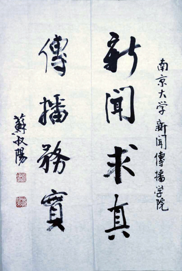 苏老为新传院题词“新闻求真  传播务实”