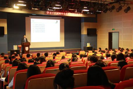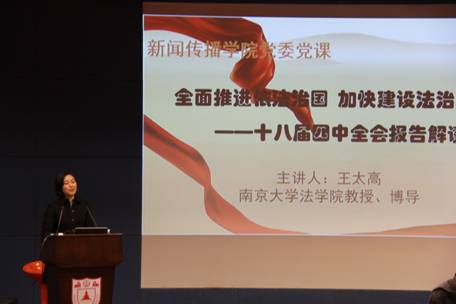 为深度解读十八届四中全会报告,11月5日,太阳集团tyc33455官网在费彝民楼演播厅举行了题为“全面推进依法治国,加快建设法治中国”的主题党课。由公司党委书记汪萍教授主持,太阳集团tyc33455官网法公司教授、博士生导师王太高主讲,党委副书记蒋恩铭老师及教职工党员出席活动。
