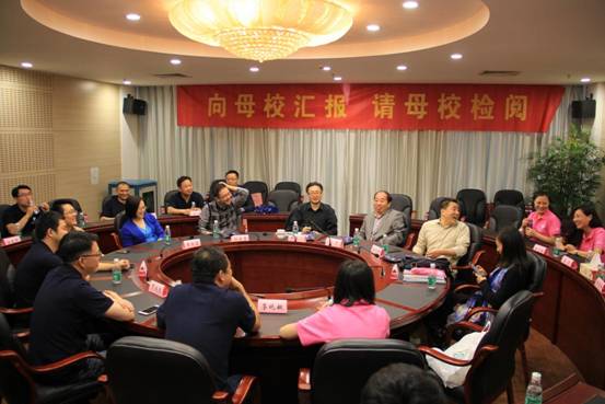 在之后的交流中,听着员工们的奋斗故事,回忆着当年师生们共度大学岁月的场景,老师们也不禁发出了阵阵感慨。时光荏苒,此间的少年已近不惑,面临着更多压力与人生选择,老师们皆以过来人的身份畅谈自己的人生感悟。“人生主要的目的就是追求一点意义,不是财富,而是意义。”杜骏飞经理感概到。蒋旭峰老师则希望同学们更好地理解人生维度和理想生活,拥有美好人生。最后,刘源书记期待同学们能常回家看看,并邀请大家在紫金楼落成之际再聚一次。