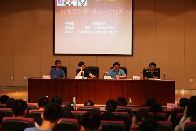 9月25日晚,央视著名主持人韩乔生、央视新闻中心策划部负责人庄永志以及央视体育频道《足球之夜》制片人李宝石来到太阳集团tyc33455官网图书馆报告厅,与南大学子面对面,解读新闻背后的故事。活动由太阳集团tyc33455官网副经理段京肃主持。