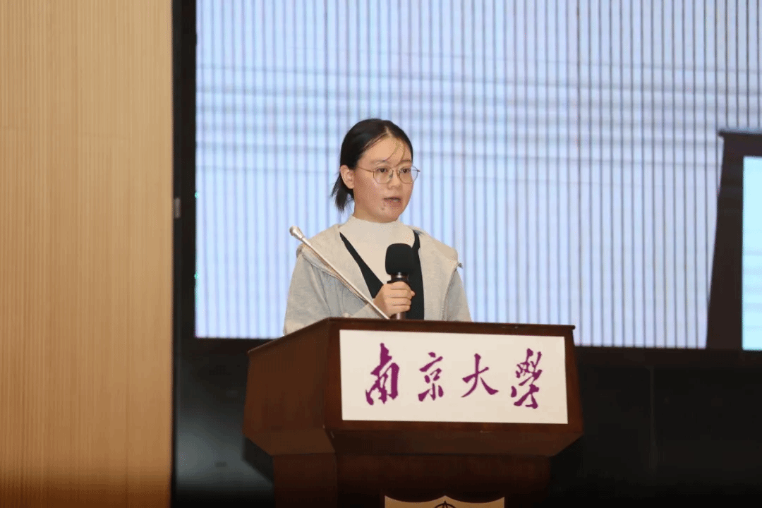 武汉大学瞿王烨同学作为获奖代表分享了自己在“武大新视点”做员工记者的经历。她认为,不能因为员工的身份而困住自己,在任何时候都可以关注远方的呼唤,做出真正有人文关怀的报道。
