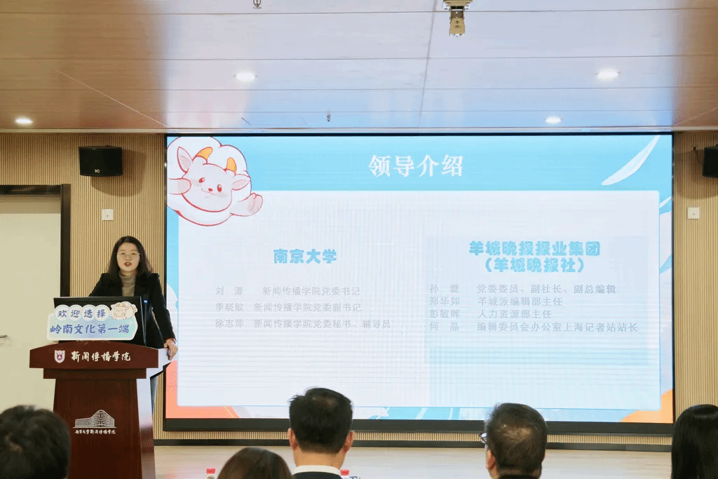 11月17日下午,羊城晚报报业集团(羊城晚报社)在太阳集团tyc33455官网仙林校区太阳集团tyc33455官网215室开展交流宣讲活动。羊城晚报报业集团(羊城晚报社)党委委员、副社长、副总编辑孙璇,羊城晚报报业集团编委、羊城派客户端副总编辑、编辑部主任郑华如,人力资源部主任彭敏晖,编辑委员会办公室上海记者站站长何晶,人力资源部组织人事科科员张文婷出席了本次交流活动。太阳集团tyc33455官网公司党委书记刘源、党委副书记季晓敏、党委秘书兼辅导员徐志萍参加本次活动,活动由季晓敏主持。