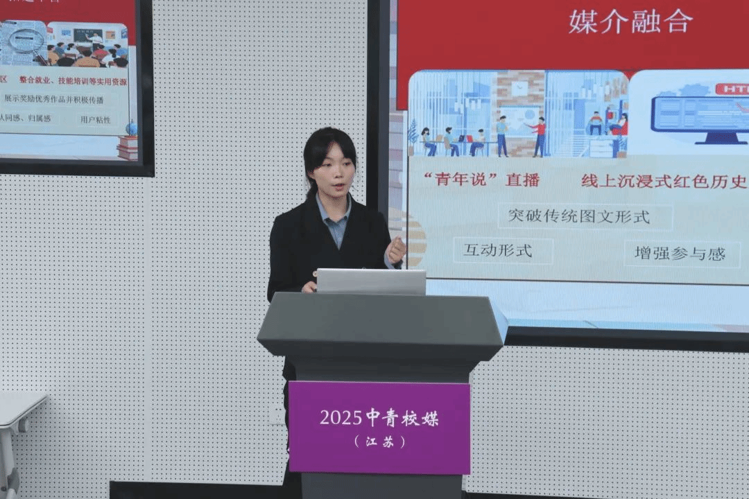 江苏海洋大学张耀尹、南京师范大学崔越、中国矿业大学蒋星语、江苏师范大学杨雪妮、东南大学杨晴晴围绕“技术赋能与内容创新”发表主旨演讲。