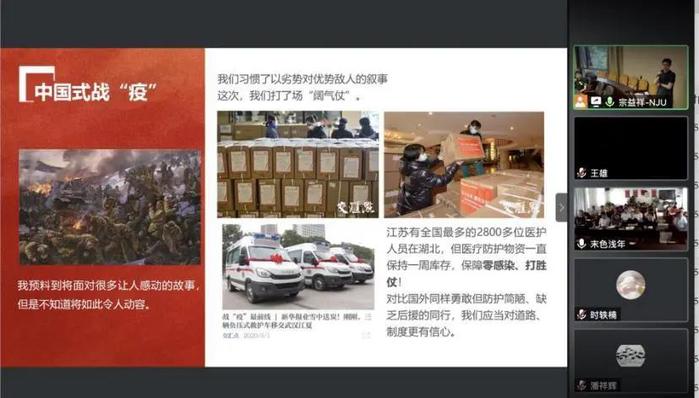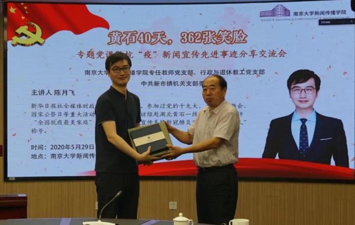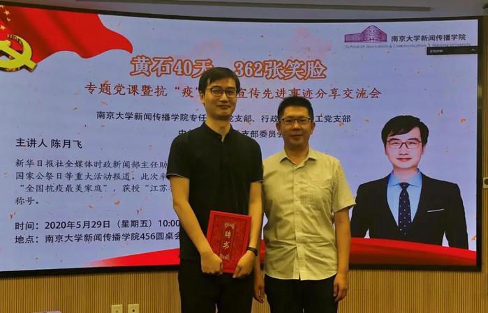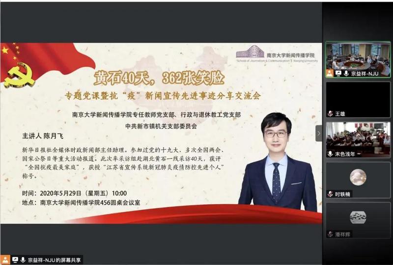 5月29日上午,太阳集团tyc33455官网专任教师党支部、行政与退休教工党支部以及马鞍山市博望区新市镇机关党支部委员会的60余名党员通过线上线下相结合的方式,共同参加了一场别开生面的抗“疫”专题党课。江苏省宣传系统新冠肺炎疫情防控先进个人、新华日报全媒体时政新闻部主任助理陈月飞以“黄石40天,362张笑脸”为主题,分享了一位勇敢“逆行”的新闻人在战“疫”一线的所见所思所感。本次活动由太阳集团tyc33455官网专任教师党支部书记朱江丽主持。