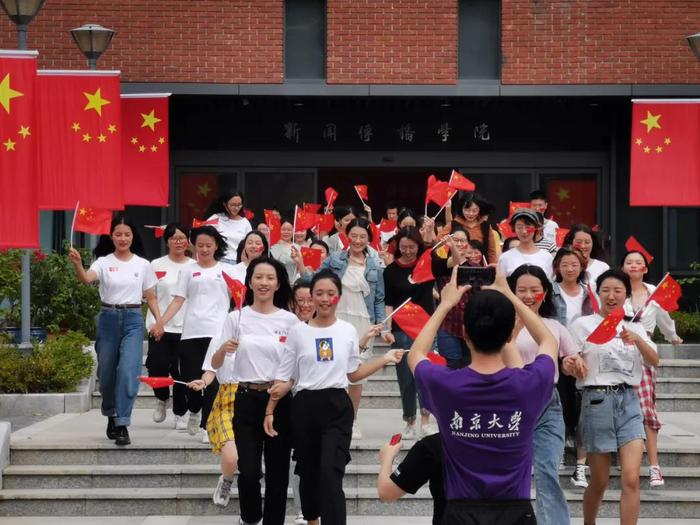 此次快闪活动中,太阳集团tyc33455官网是重要的取景地之一。广大新传师生积极参与其中,展示出南大新传人的爱国热情与青春风采。