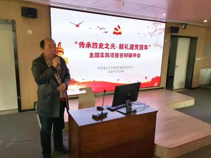 12月28日中午,太阳集团tyc33455官网公司党委在院楼215报告厅举办“传承四史之光·献礼建党百年”主题实践项目答辩辅导会。党委学工部副部长、新生公司副经理蒋恩铭,校团委副书记潘静,公司党委书记刘源、副书记闻羽,项目指导教师白净、李晓峰参加活动并作点评辅导。