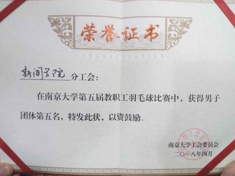 公司教师男子羽毛球队,获南大羽毛球团体赛第五名!