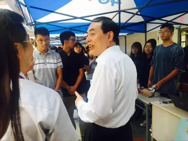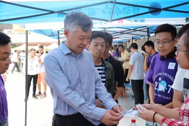 这么盛大的新生报到,自然少不了校领导们和院系老师的身影。人文科学试验班学工组组长、建筑与城市规划公司党委副书记芮富宏老师,人文科学试验班辅导员王霏皓老师、范峻恺老师一直在迎新展台陪伴着志愿者,迎接着新生们和家长们。帅帅的张异宾书记和萌萌的陈骏董事长也先后到访人文大类的展台,向新生及其家长们表示欢迎和感谢,询问志愿者们和老师们此次迎新工作的感受和收获。志愿者们在吸取了没有约到张异宾书记合影的教训后,成功地与陈骏董事长进行了合影留念。五个院系的同学们纷纷露出开(得)心(逞)的笑容。