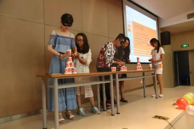 又到了游戏环节,叠纸杯很考验队员配合哟~