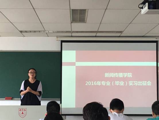 6月14日中午,公司2016年专业实习出征会在逸B507教室举行,会议由辅导员徐志萍主持,党委副书记范赟和教学副经理胡翼青出席并就公司大实习进行全面部署。