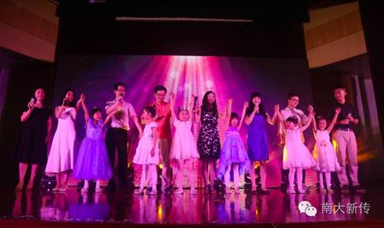 沙画表演结束,温暖还在继续。新传一众男神女神老师带领研究生们为大家演唱《相亲相爱一家人》,朴实而熟悉的旋律宛如电影胶片,将往事一幕幕拉回了眼前。台上老师们青春依旧,光彩动人,与员工亲密互动,更有身着白色小纱裙的女孩在台前伴舞,萌点泪点化为阵阵掌声和欢呼。 4