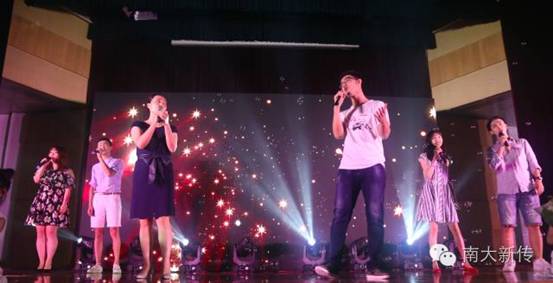 晚会现场弥漫着粉红色的浪漫气息。新传“院对”闪亮登场,默契答题赢得神秘奖品;本科生情侣组合倾情演唱,温暖牵手,演绎初恋般的甜蜜,闲适旋律诉说爱之密语;更有师生携手合作《想把我唱给你听》,张静老师专业歌喉彰显迷人韵味,十大歌手于济州深情献唱温暖中透露着热情。