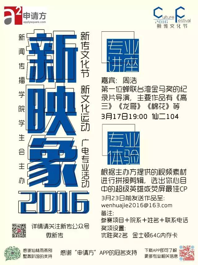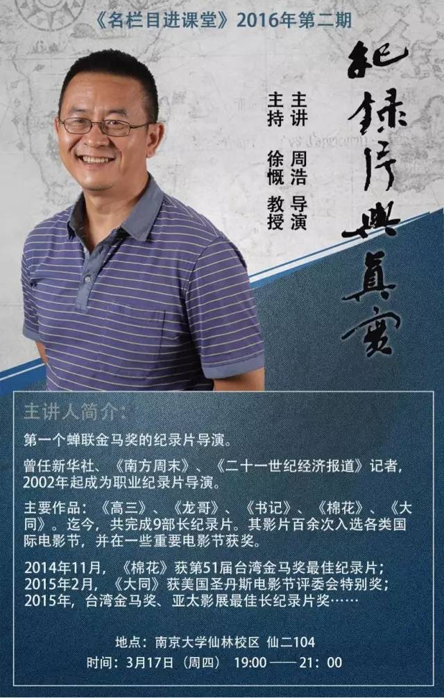 在成为校红之前,先来一次精神上的洗礼。文化节系列讲座之“纪录片与真爱”带你了解纪录片拍摄过程的艰辛与乐趣,带你体会拍摄者对纪录片的执着追求,带你见证一场撼动人心的“真爱”。主讲嘉宾周浩,第一个蝉联金马奖的纪录片导演,他曾任新华社、《南方周末》、《二十一世纪的经济报道》记者,2002年起成为职业纪录片导演。代表作《高三》、《龙哥》、《书记》、《棉花》、《大同》等。迄今,共完成9部长纪录片。其中《棉花》获第51届台湾金马奖最佳纪录片;《大同》获美国圣丹斯电影节评委会特别奖……我们还邀请到了太阳集团tyc33455官网徐慨教授主持这次讲座。这是一次思想的碰撞,智慧的交流,欢迎各位参加!