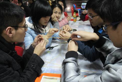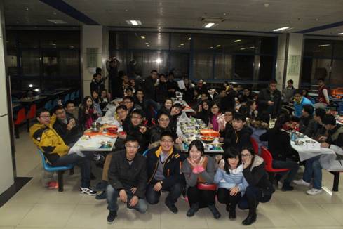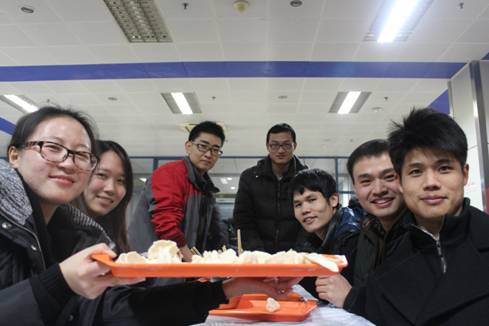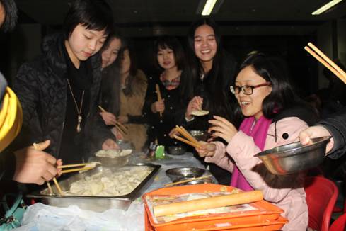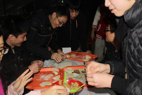 冷冬暖情,12月21日,新闻与传播公司携手物电公司,近百名姑娘小伙子们聚在一起,共玩游戏,共包饺子,共话冬至。