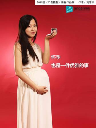 这是为安琪儿妇产医院拍摄的平面广告,表达医院所主张的私密优雅。怀孕并不意味着憔悴和疲惫的黄脸婆,在医院的私人护理下,只管放心地做一位辣妈。省去在公立医院的拥挤和排队,你可以和平时一样,或者比平时更为优雅。模特一席长裙,长发如瀑,不管是书还是化妆镜,都表现出带有几分调皮的柔美。主灯位于模特右前方,辅灯位于模特左手方向,高于模特头部,模特右后方亦有灯位,重点突出模特的腹部,兼顾脸部照明并保证其柔和。而化妆镜部分中,镜子略有的反光则起到了为脸部补光的作用,同时作为道具呈现整个构思。