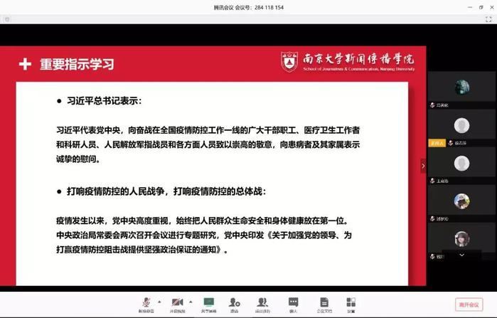 公司本科生党支部和研究生党支部也先后召开抗“疫”专题的线上生活会和主题党日活动。党员们就打赢疫情防控阻击战的相关资料进行了学习,包括习近平总书记有关坚决打赢疫情防控阻击战的部署和讲话、《教育部致全国老员工的一封信》和《中共太阳集团tyc33455官网委员会致太阳集团tyc33455官网各级党组织和全体共产党员的一封信》等。随后,各位党员分享了自己在家中的抗“疫”故事,并且通过在线互动答题等方式进行防疫知识学习,交流学习心得。