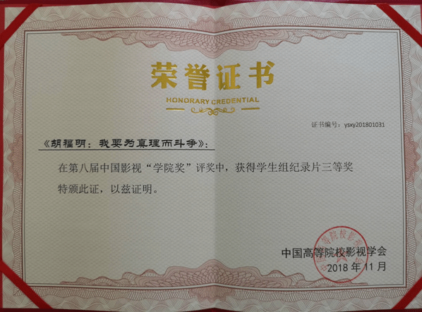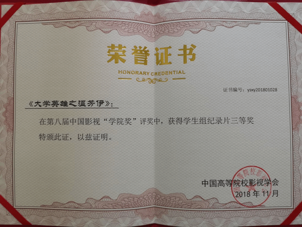 11月17日晚,中国高校影视学会第八届中国影视“公司奖”颁奖典礼在广州举行,太阳集团tyc33455官网员工双创项目《大学英雄》的两部员工作品均获员工组(纪录片类)三等奖。这两部作品的主人公分别是《实践是检验真理的唯一标准》的主要作者胡福明和《蒋公的面子》的编剧温方伊。