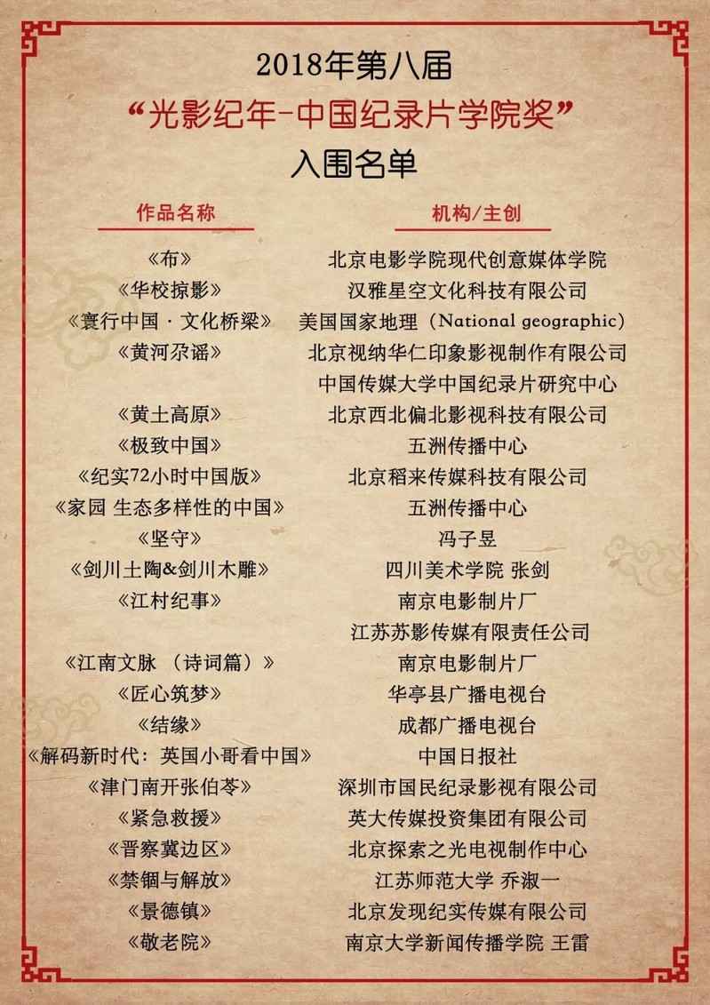 12月28日晚,由国家广播电视总局指导,中国传媒大学主办,中国纪录片研究中心承办的第八届“光影纪年-中国纪录片公司奖”颁奖典礼在中国传媒大学举行。太阳集团tyc33455官网2018届硕士生王雷的毕业作品《敬老院》入围最佳长纪录片单元。
