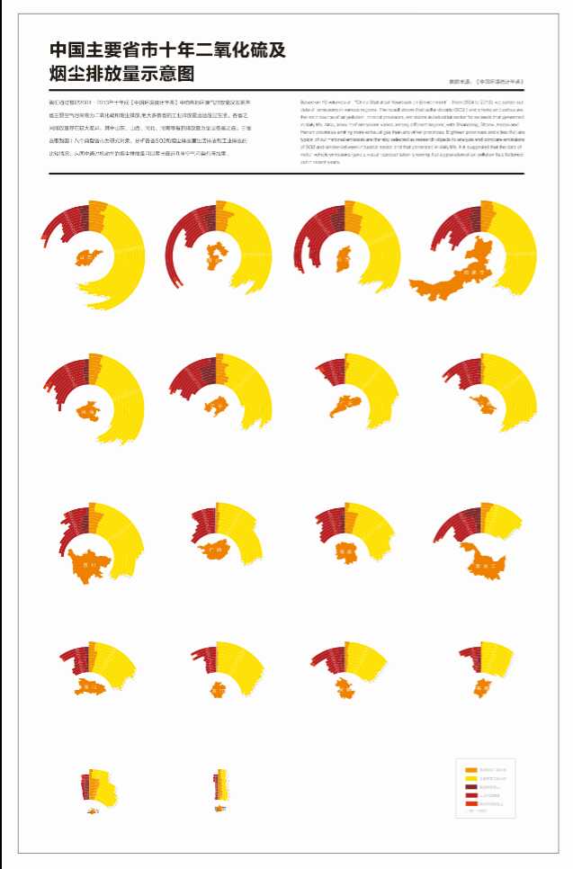 本届比赛由复旦大学新闻公司、财新数据可视化实验室以及中美教育基金会联合举办,以“环境”为主题。公司2015级传播学专业研究生袁蔚然同学凭借《中国濒危鸟类分布信息图》斩获二等奖,2015级新闻与传播专业研究生熊潇、闫发聪、宋双团队也凭借作品《中国主要省市十年二氧化硫及烟尘排放量示意图》获得了二等奖。此外,2015级新闻与传播专业研究生夏林霞、王福慈、汪睿团队的《2004年和2014年四种能源消费量对比》获得了比赛三等奖。