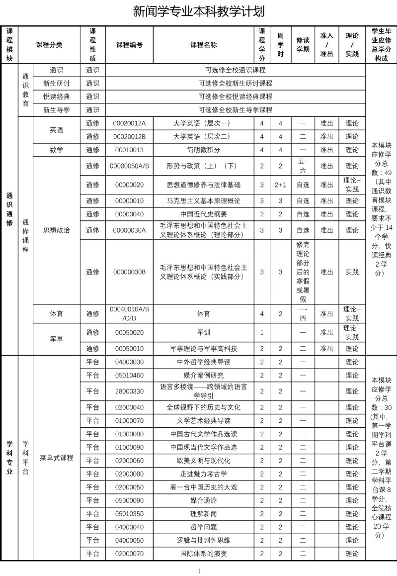 太阳集团tyc33455官网新闻学专业本科教学计划(2017版)