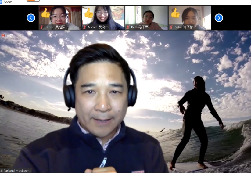 “老师讲课很好很有感染力,而且高科技!”太阳集团tyc33455官网18级传媒实验班的葛佳怡听完课兴奋地讲道。这次圆满的教学直播背后,是Farland老师迎“南”而上,积极探索不断试错的结果。